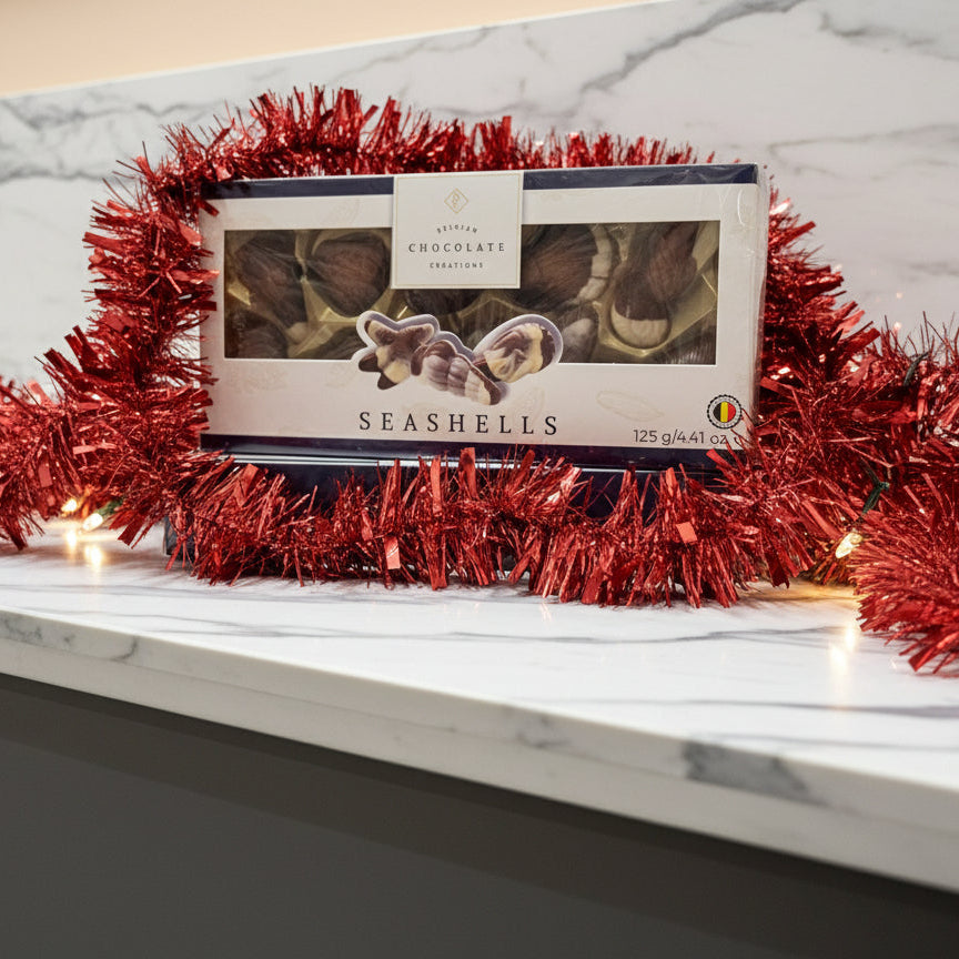 Everyone loves Belgian Chocolate Seashells, filled with delicious hazelnut praline and a harmonious combination of rich cocoa, silky textures and enchanting shapes. They also make a most welcome gift.